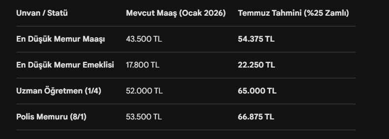 Temmuz ayında yapılacak güncelleme ile beklenen maaş tahminleri netleşmeye başladı.