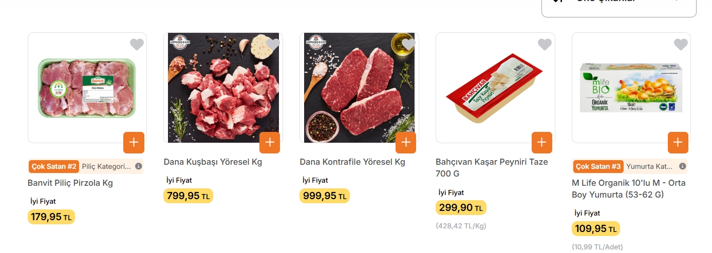 Migros indiriminde diğer öne çıkan et ürünleri de şöyle: