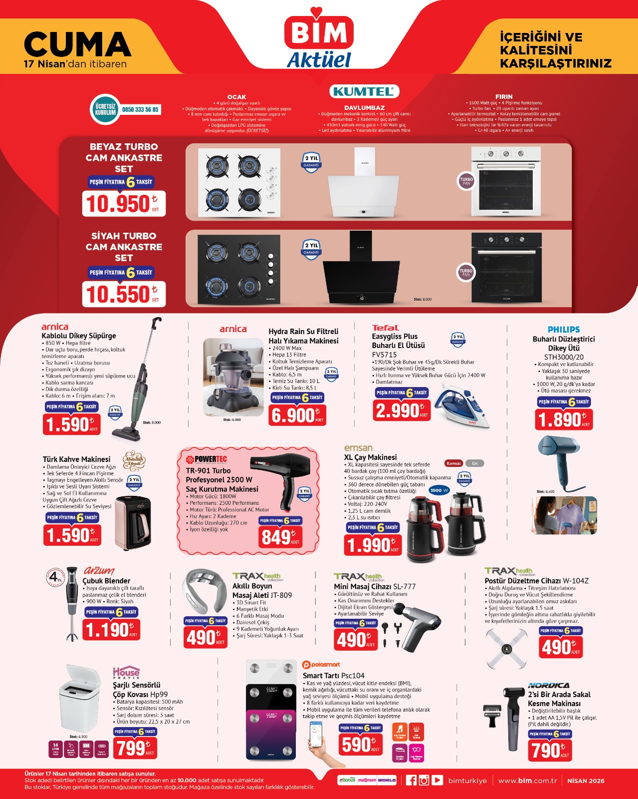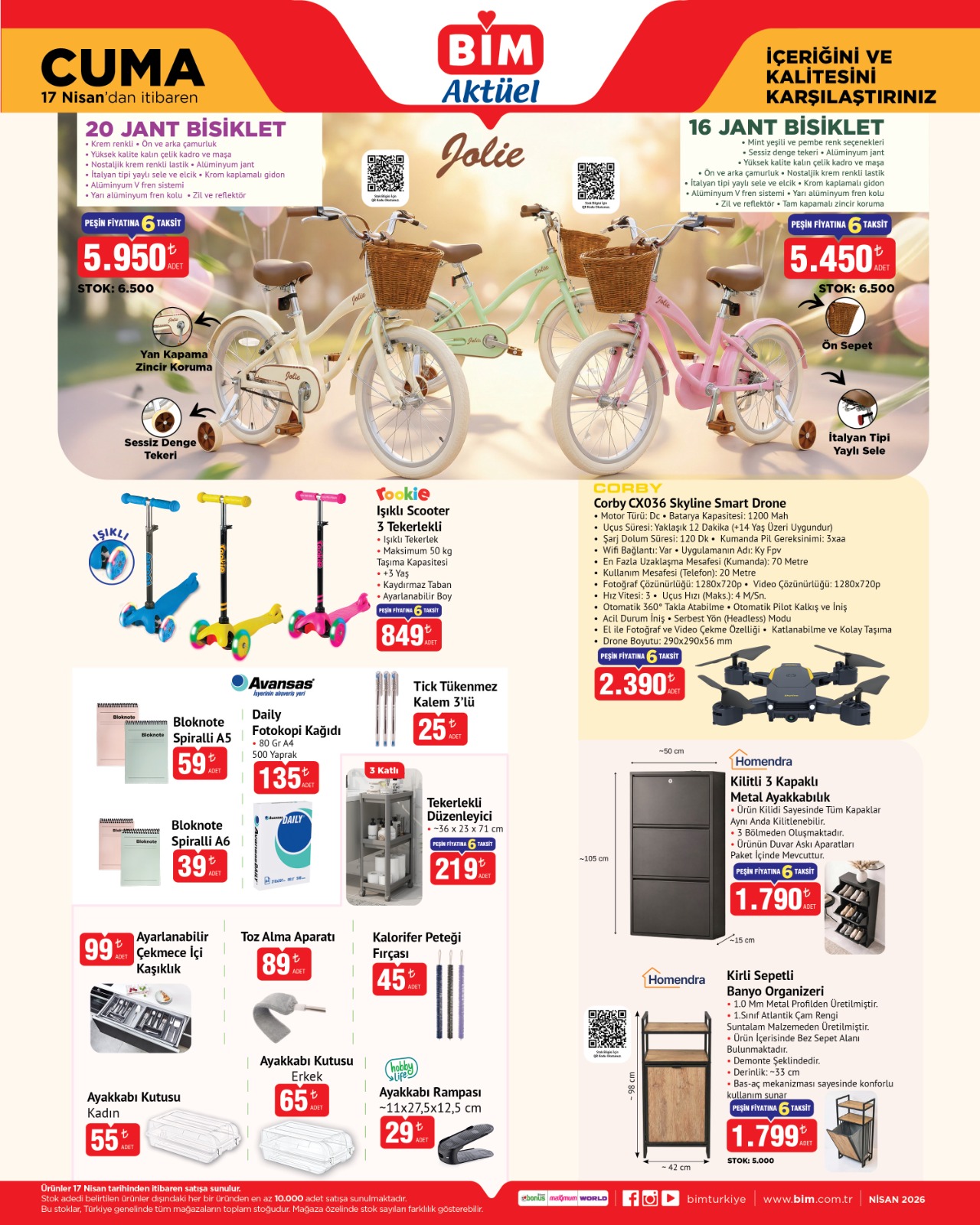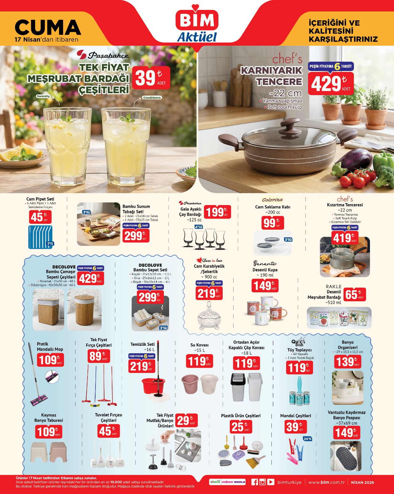 BİM 17 Nisan 2026 aktüel ürünler kataloğu ile haftanın indirimli ürün listesi belli oldu. Yine kapış kapış gidecek bir haftalık indirim broşürü hazırlayan BİM’de, bu haftanın fırsat ürünleri haberimizde…